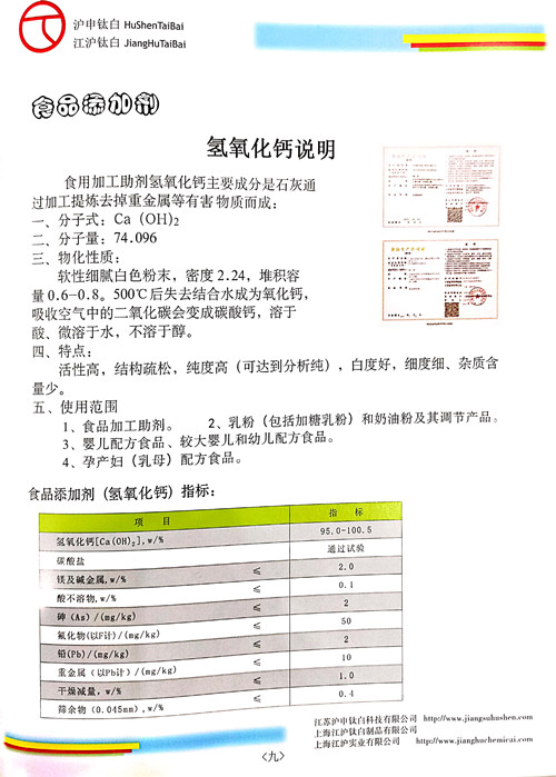 - 下一篇:滬申牌食品級氫氧化鈣-濕法